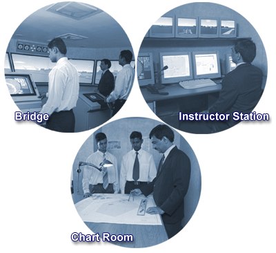 All ranks of navigating officers and deck ratings are trained on the state of the art ship handling simulator.